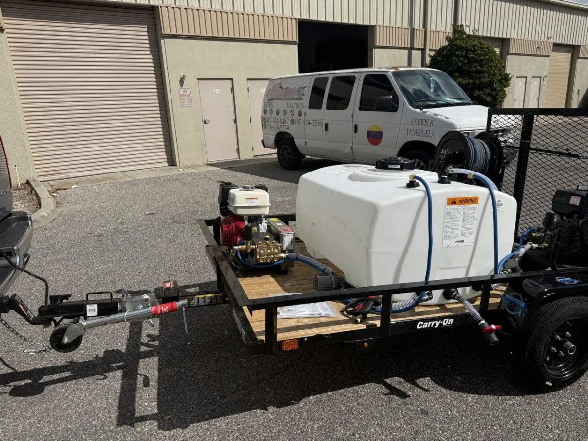 • Full setup (dual washers, 150-gal tank, reels, hoses, tips)